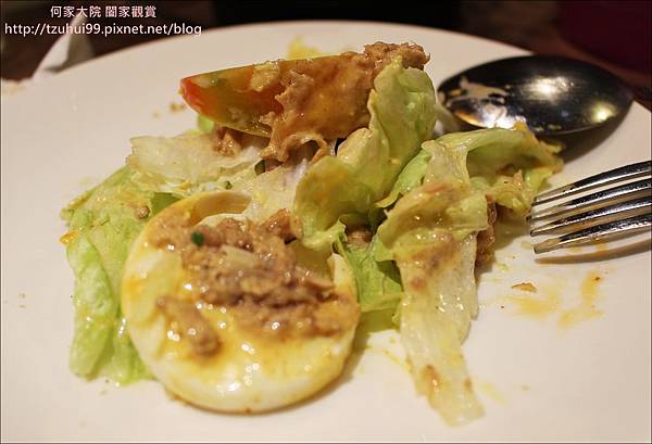 而添加的沙拉醬料&鮪魚醬&白煮蛋則是讓這沙拉吃起來多了份更豐富與營養的感覺